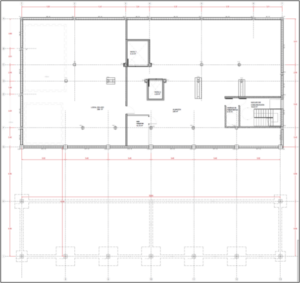 El proyecto se compone de dos zonas bien diferenciadas, pero conectadas, la de servicios (con planta sótano para instalaciones y planta baja) y el hangar para vehículos (de una sola planta).