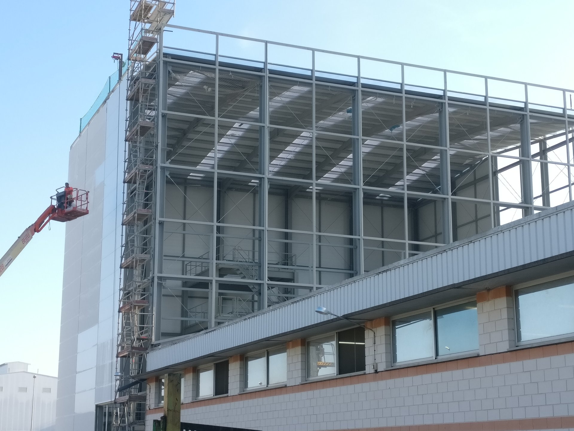 Ejecución de edificio para albergar equipamiento industrial. Estructura metálica singular de 20 metros de altura.